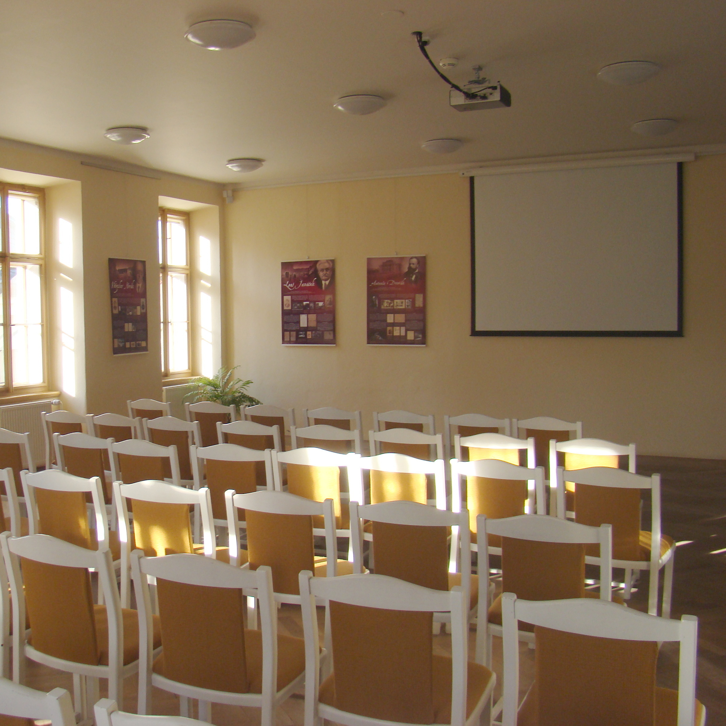 Vybavení: v audiovisuálním sále lze využít techniku (PC, dataprojektor + plátno, vizualizér, flip chart) a klavír Petrof pro účely hudebního doprovodu